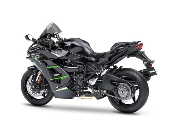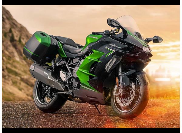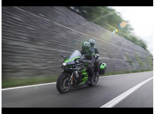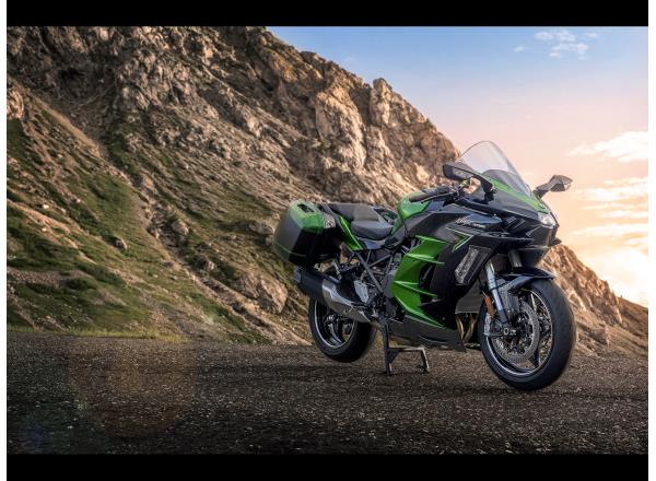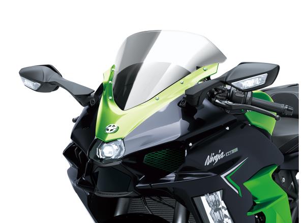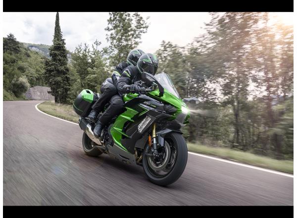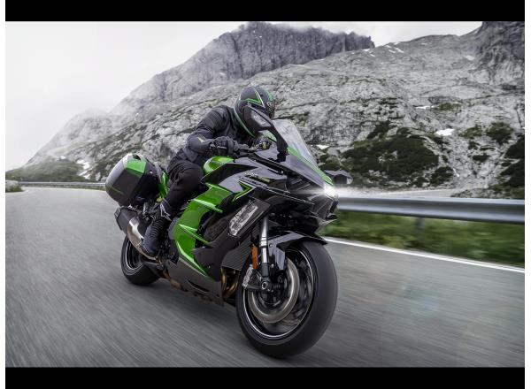 With its large windshield and full-fairing bodywork, the Ninja H2 SX provides substantial wind protection, contributing to rider comfort on long rides. In addition to contributing to sporty styling, the aerodynamically shaped bodywork is also a benefit when riding at highway speeds.
