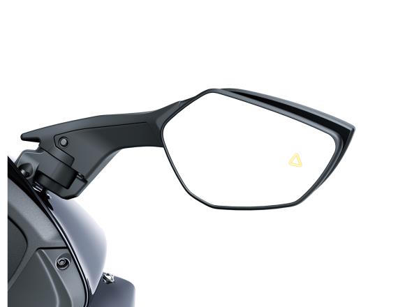 The rear-facing radar sensor monitors the bike’s surroundings and alerts the rider to presence of a vehicle approaching in the rider’s blind spot.