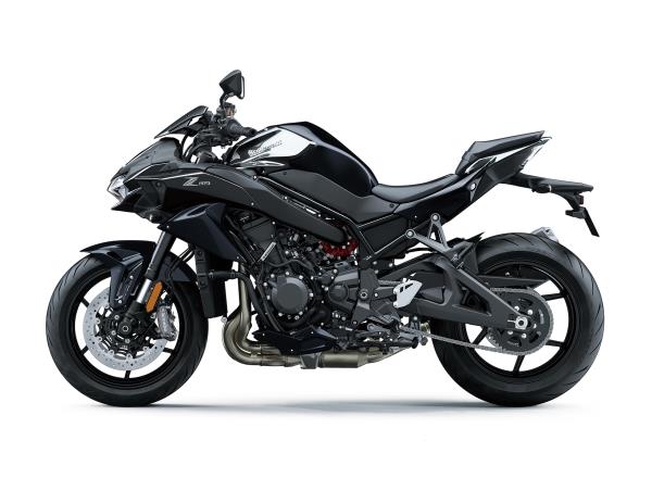 The styling of the Z Series flagship Z H2 was shaped according to its SUGOMI & Minimalist design concept. Its dynamic crouching form, which calls to mind a predator poised to attack, and the asymmetric Ram Air intake on its left side are elements of its fiercely intense and highly individualistic SUGOMI design. Its compact chassis is the product of a minimalist design philosophy, with all functional parts shown simply, without flourish, and made as small as possible. Conversely, the prominent display of the new steel trellis frame its aluminium pivot plate only underscores their importance – both functionally and as styling elements. Finally, when discussing the Z H2’s styling, the significance of the Kawasaki River Mark emblem displayed on the headlamp cowl should not be forgotten. Its use, an honour permitted only for machines powered by supercharged engines, confirms the Z H2 as a flagship model.