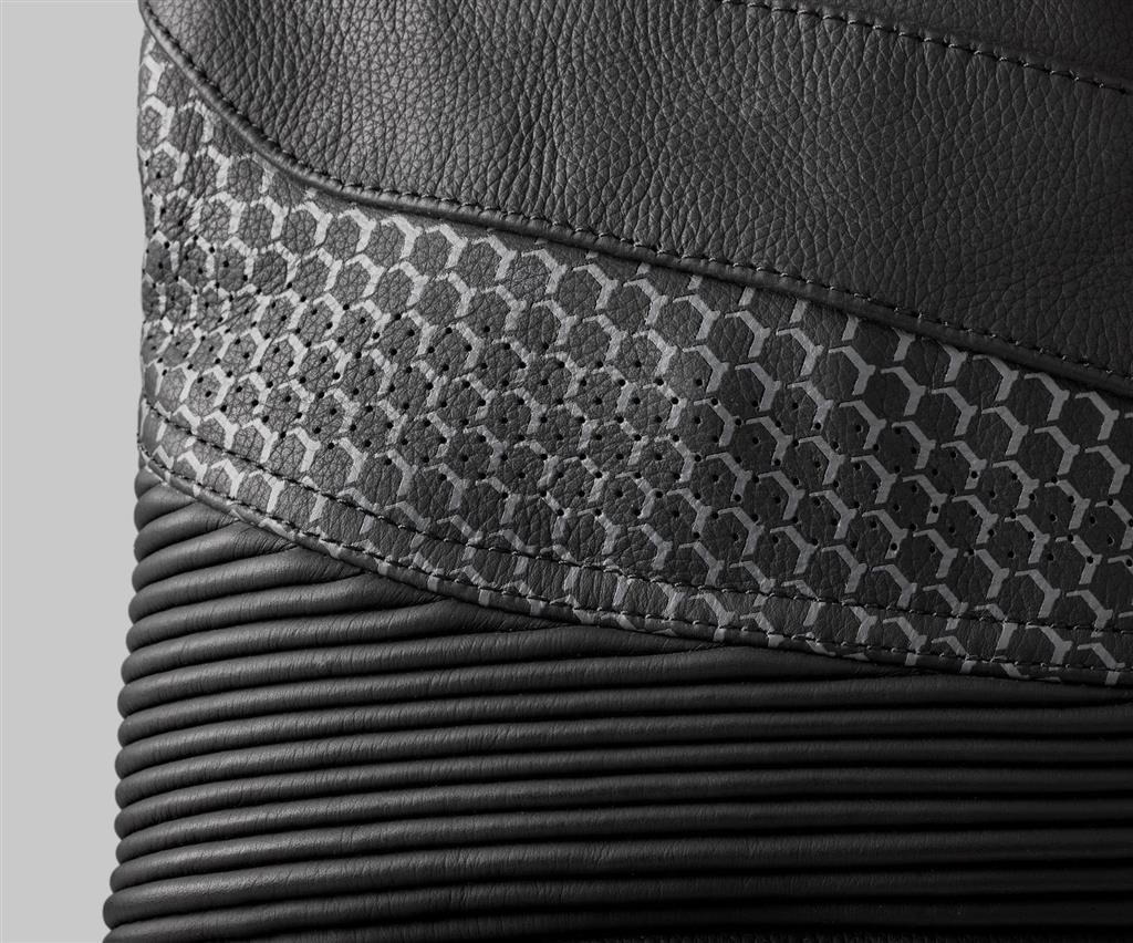 • Perforated leather panels for airflow.