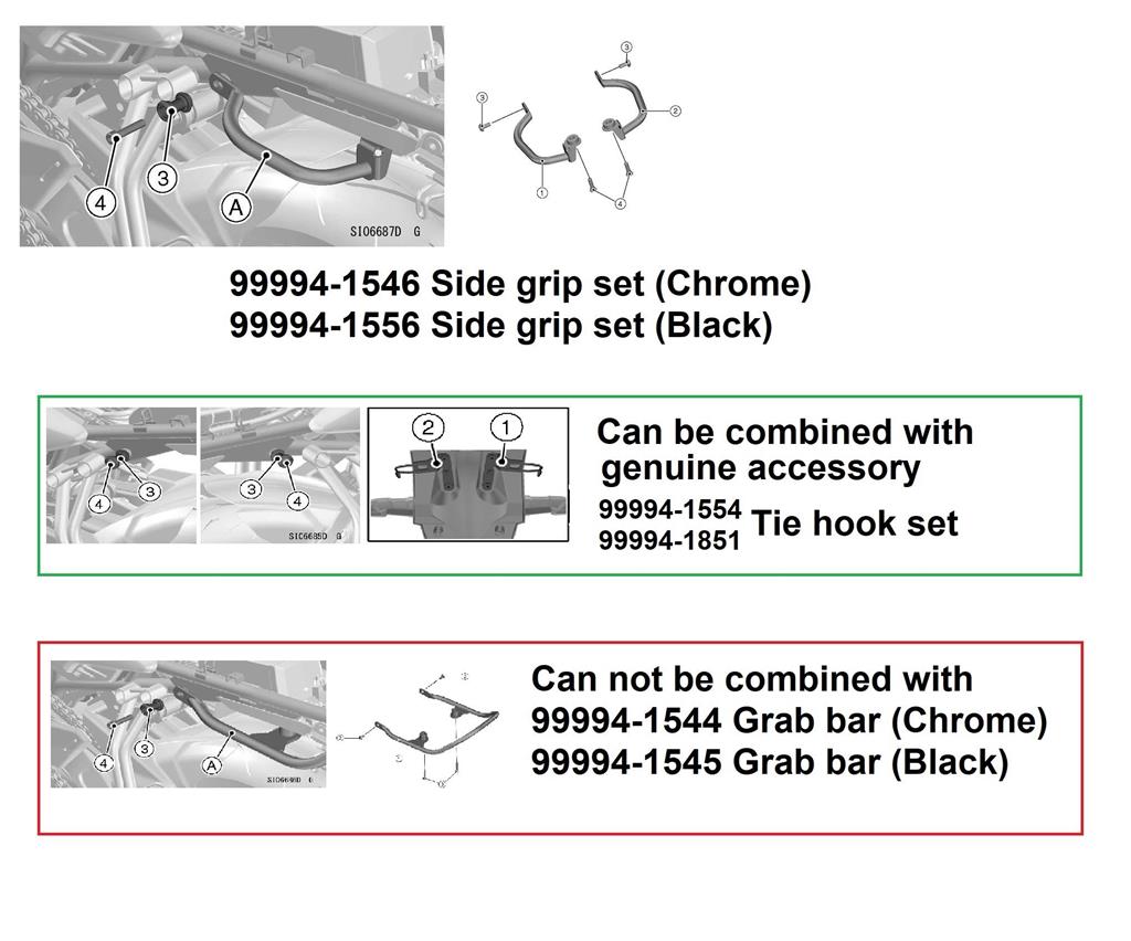 The Side grips can not be installed in conjunction with the Grab bars for Z650RS.