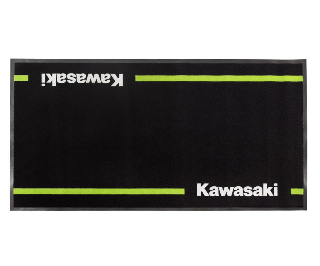 Whether you want to park your bike in a pitbox or in your garage, let your precious machine rest in style on this Kawasaki Garage Mat. The mat meets new FIM environmental codes and offers a high level of absorption and dust-control features.