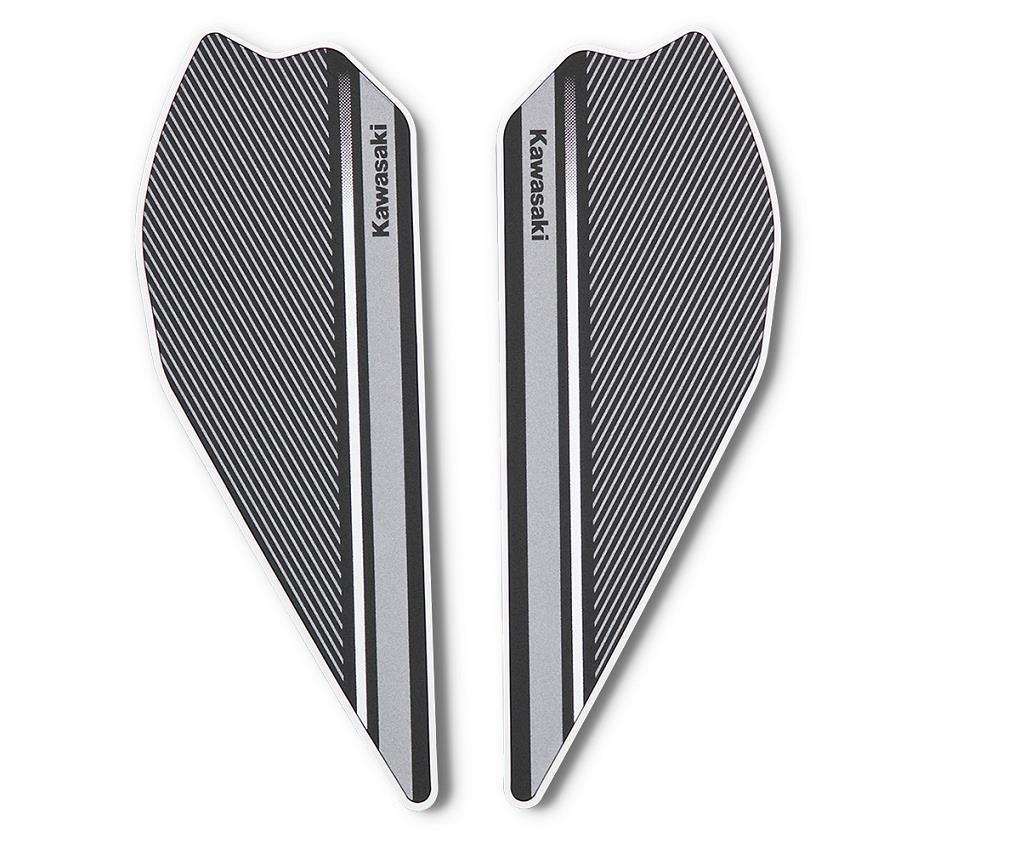 Decorative foil pad with grey pattern to protect the paintwork in the area around the rider's knees.